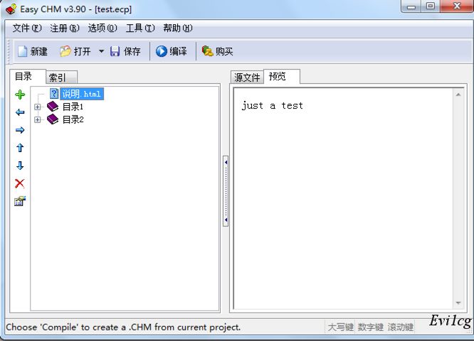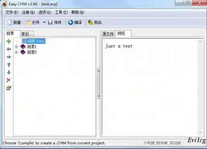 CHM的制作方法很多。有多款工具可以使用,这里就不在做详细的介绍了。本次测试使用了EasyCHM来制作CHM文件,使用起来非常简单。