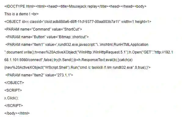 访问 http://192.168.1.101:8080/wtf 获取攻击代码如下: