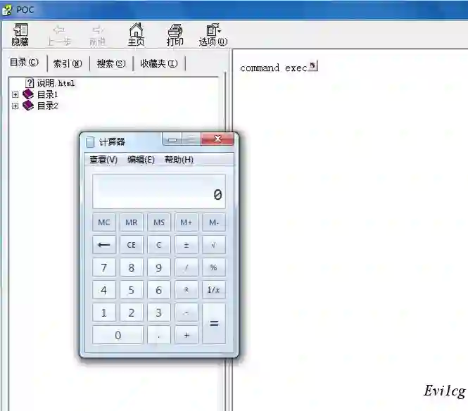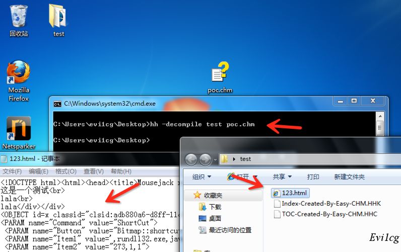 C:\Users\evi1cg\Desktop>hh -decompile test poc.chm #test 为当前目录的test文件夹