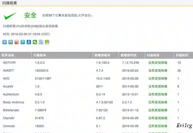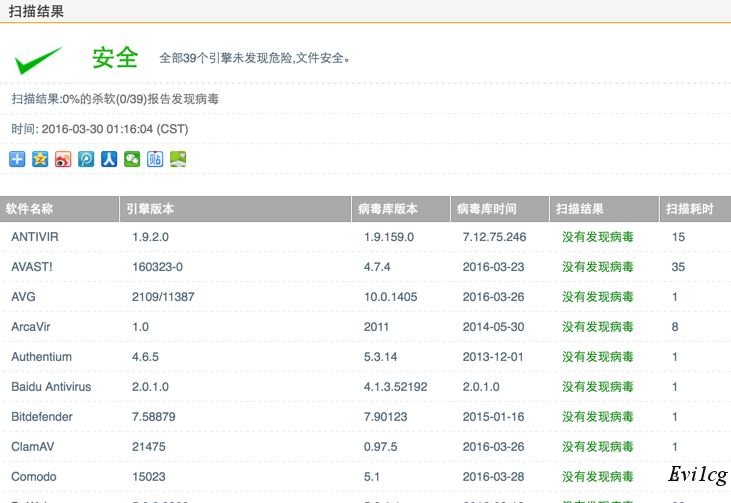可能很多人会问,会不会被杀,下面是virscan的查杀结果: