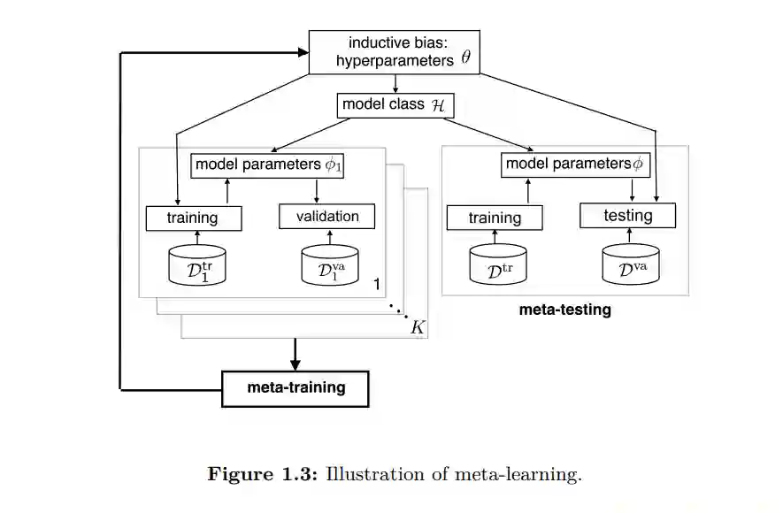元学习:在元学习中,我们可以访问许多任务的数据,但我们对训练机器学习模型不感兴趣,就像在多任务学习中那样。相反,我们希望使用来自多个任务的数据来设计一个训练程序,而不是产生一个单一的机器学习模型。具体来说,目标是确保元学习训练过程能够有效优化机器学习模型,用于任何先验未知的学习任务。因此,在元学习设置中,人们不知道目标任务将是什么,尽管人们期望它与那些有数据可获得的目标任务相似。通过优化学习过程,元学习实现了一种学习的形式。在图像分类示例中,元学习将生成一个过程,能够通过使用来自其他类似分类任务池的数据,为任何新的分类任务优化分类器。