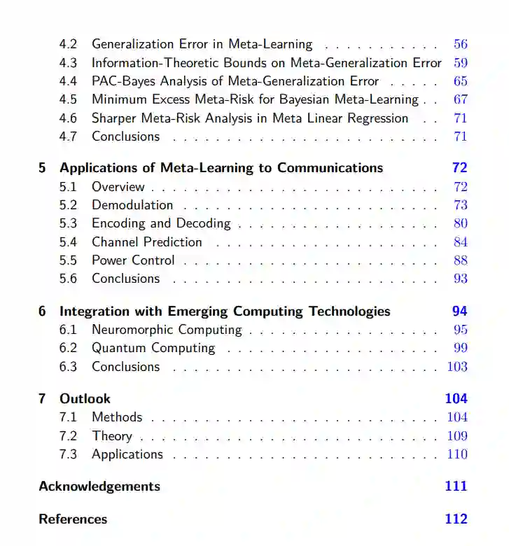 第五节。元学习在通信中的应用:本节介绍了元学习在设计通信系统的工程问题中的应用的几个例子。回顾的应用例子包括解调和功率控制。