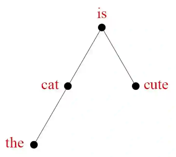 近段时间,一个激动人心的发现带来了一种全新类型的表征方式。关于一个句子的语言信息中,一大关键部分是其句法结构。这种结构可以表示成树,其节点对应于句子的词。Hewitt 和 Manning 在论文《A Structural Probe for Finding Syntax in Word Representations》中表明某些语言处理网络能够构建这种句法树的几何副本。词是通过在一个高维空间的位置给定的,而(遵照一定的变换)这些位置之间的欧几里德距离映射了树距离。