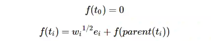 看待这种构建方式的一个角度是:我们为每条边分配了一个基向量。为了得到节点的嵌入,我们走回到根并将我们经过的边的所有向量加起来。见下图。