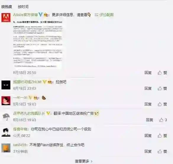 今年6月,Adobe 官方微博又再次重申。中国大陆用户们在2020年后仍可以享受到Flash Player最新版本的下载、运营与技术维护等服务。
