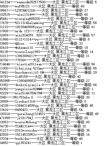 盗过来的号会按照游戏分区,比如:上海一区、上海二区、北京一区这样子。类似下图: