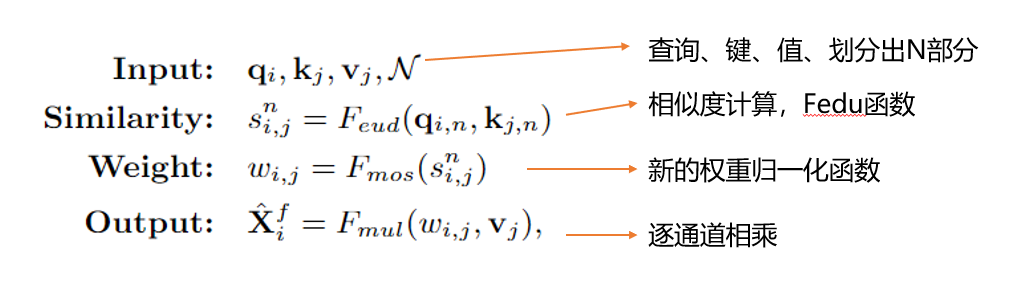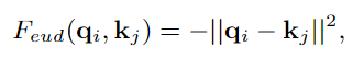 Grounding Transformer(GT)可以归类为自上而下的非局部non-local交互,它将上层特征图Xct中的 "概念 "与下层特征图Xf中的 "像素 "进行对接。输出特征图与Xf具有相同的尺度。一般来说,不同尺度的图像特征提取的语义或语境信息不同,或者两者兼而有之。此外,根据经验,当两个特征图的语义信息不同时,euclidean距离的负值比点积更能有效地计算相似度。所以我们更倾向于使用euclidean距离Fedu作为相似度函数,其表达方式为: