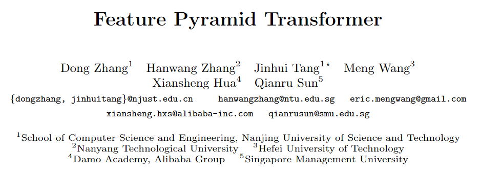 为此,本文提出了一种在空间和尺度上完全活跃的特征交互,称为特征金字塔Transformer(FPT)。