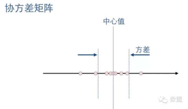 假设我们有一个一维的数据,这个数据每次测量都不同,我们假设服从高斯分布,那么我们可以用均值和方差来表示该数据集,我们将该一维数据集投影到坐标轴上,如下图: