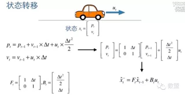假设我们想在有一辆小车,在 t 时刻其速度为 Vt ,位置坐标为 Pt,ut 表示 t 时刻的加速度,那么我们可以用Xt表示 t 时刻的状态,如下: