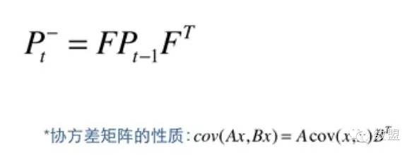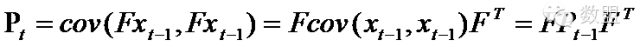 在公式(1)之中,我们已经得到了状态的转移公式,但是由上面可知,二维数据的协方差矩阵对于描述数据的特征是很重要的,那么我们应该如何更新或者说传递我们的二维数据的协方差矩阵呢?假如我们用 P 来表示状态协方差,即
