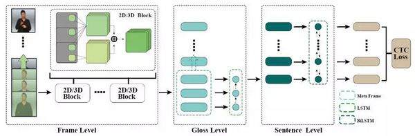 结合普通2D卷积网络和3D卷积网络的优势,通过2D卷积网络来提取手语中的手势和身体姿势等静态信息,同时通过3D卷积网络来提取手语中普遍存在的细微而快速的变换动作的动态信息,最后将这两个信息相结合,产生最后的特征表达。