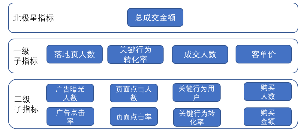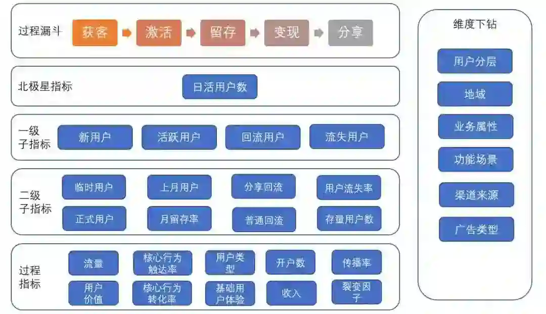 确定了北极星指标及子指标,我们还需要过程指标将它们串联起来。