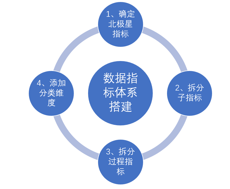 而搭建的方法也可以抽象成如下四步:确定北极星指标、拆分子指标、拆分过程指标、添加分类维度。