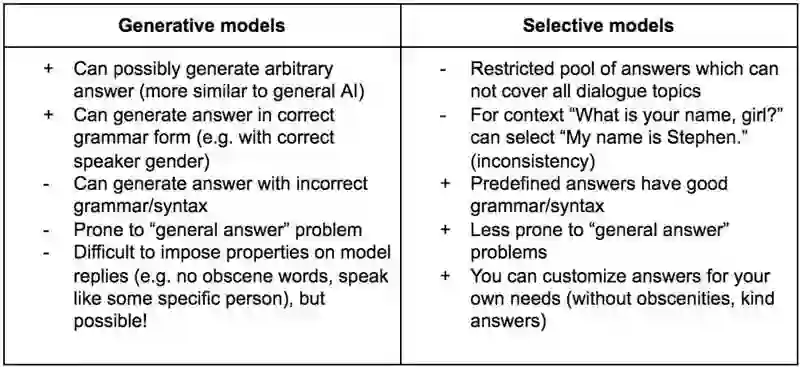 说到这里,我们已经了解了生成式模型与选择式模型的工作原理。不过哪种类型更适合您的实际需求?以下表格也许能够帮助大家作出正确的选择。