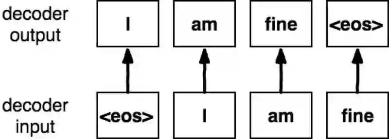 以上描述的流程只是模型的推理部分,除此之外还有模型的训练部分,且后者的实现方式略有不同——在每个解码步骤当中,我们需要使用正确单词 y_t 而非生成的单词(w_t)作为输入内容。换句话来说,在训练过程中,解码器会消费正确的回复序列,但移除其中的最后一个标记并添加