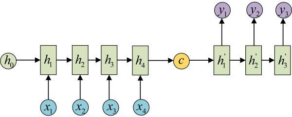 原始的N vs N RNN要求序列等长,然而我们遇到的大部分问题序列都是不等长的,如机器翻译中,源语言和目标语言的句子往往并没有相同的长度。