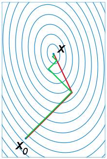 注:绿色为梯度下降法,红色代表共轭梯度法