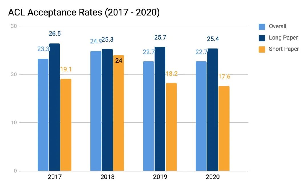自2017年来ACL的论文接收率