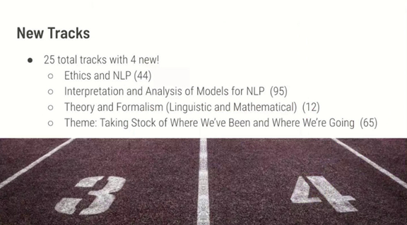 今年总共接收了778篇论文,其中长论文570篇,短论文208篇,接收率为22.7%,与最近的三次ACL会议相近。其中长论文接收率为25.4%,短论文接收率为17.6%。可见,短论文比长论文更难被接收。