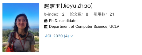 在一作华人学生榜单中,来自加利福尼亚大学洛杉矶分校的赵洁玉入选4篇论文位列第一。