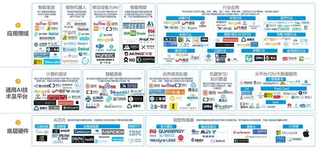 行业应用:将AI通用技术应用于金融、安防、建筑、医疗、教育、零售/电商、视频/娱乐/社交等领域,或传统行业通过研发AI技术赋能自身业务以实现降本增效、提升用户体验的公司。