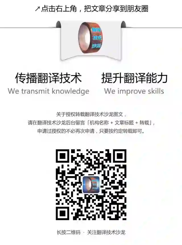 加入沙龙总群请在“翻译技术沙龙”(trantechsalon)微信公众号后台点击「沙龙」->「入群」获取入群方式。