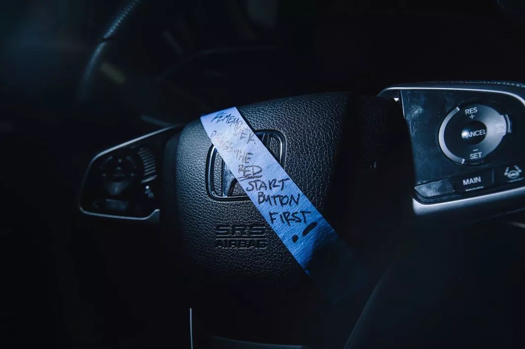 我可以顺着小巷肆意地开,避开了并排停着的运钞车,在工地周围转悠。这次简短的兜风就像一次漫无目的外出。我开出的每一厘米,遇到的每一个景物,甚至为了避开布林克卡车所越过的每一条双线,都被装在挡风玻璃顶上(后视镜正上方)的设备记录了下来。
