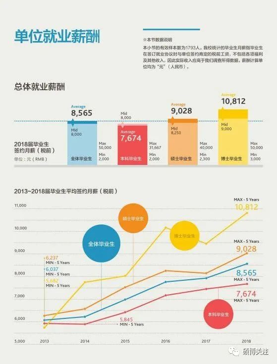 本科生平均期望起薪7759元/月,实际6922.1元/月。研究生平均期望月薪9405元/月,实际8551.4元/月。其中,证券业起薪最高,9931元/月,其次为其他金融业、IT业。