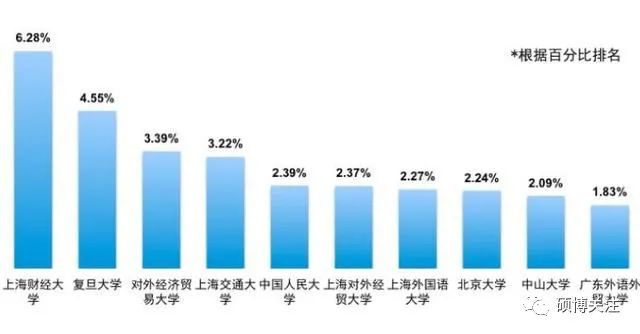 其中上海财经大学更是达到了6.3%的超高比例。这里影响因素有很多,比如所在城市(北上广一线)、专业(财经类)等。