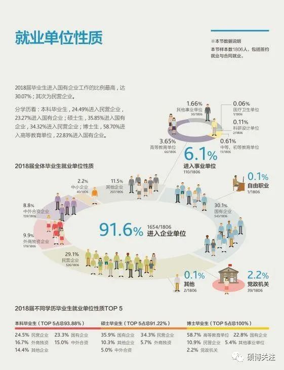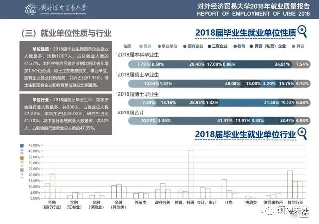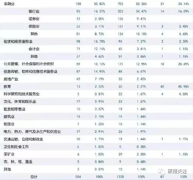 2018年,签约金融业的本科生为30.82%,硕士生为53.26%,金融业是主要的就业去向。
