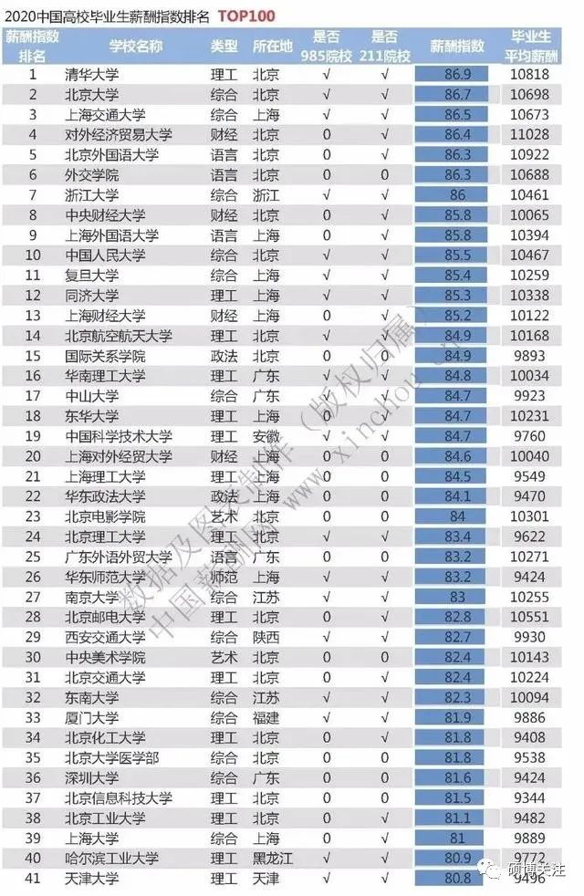 近日,中国薪酬网发布了《2020中国高校毕业生薪酬指数排名》。此次排名按照工资水平、就业率、人才成长率、薪酬增长率四个要素,排出了TOP 100。
