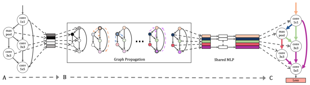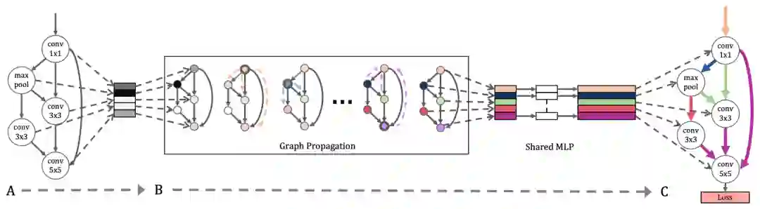 第一个实现了对原始候选图的计算,从而更新每个节点相关的信息,第二个将更新的节点作为输入,预测候选神经网络的相应计算单元的参数。
