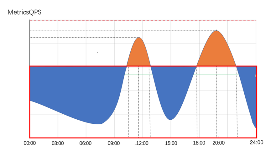业务算力模型明显有波峰波谷,但是资源消耗的模型并未较好匹配,虽去除了未触达的冗余算力,但仍是以最高峰配置全时段占用算力,导致闲时浪费明显。