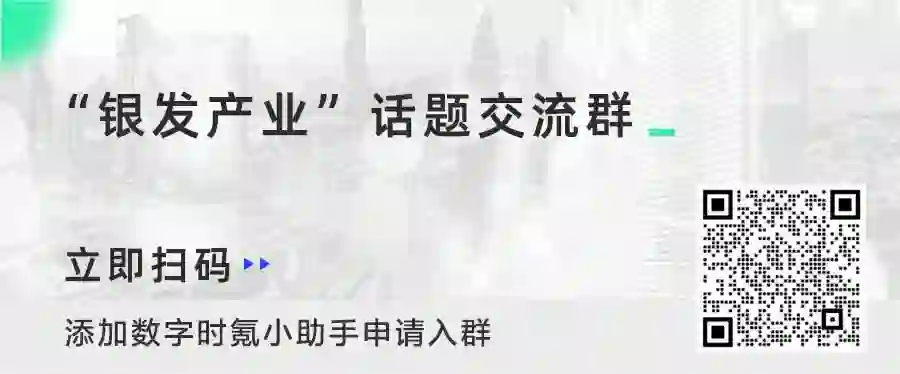 我们也在建设「银发产业话题」交流社群,欢迎扫码添加数字时氪小助手,并发送名片或者个人介绍,我们将为您持续推荐相关产业信息和活动。