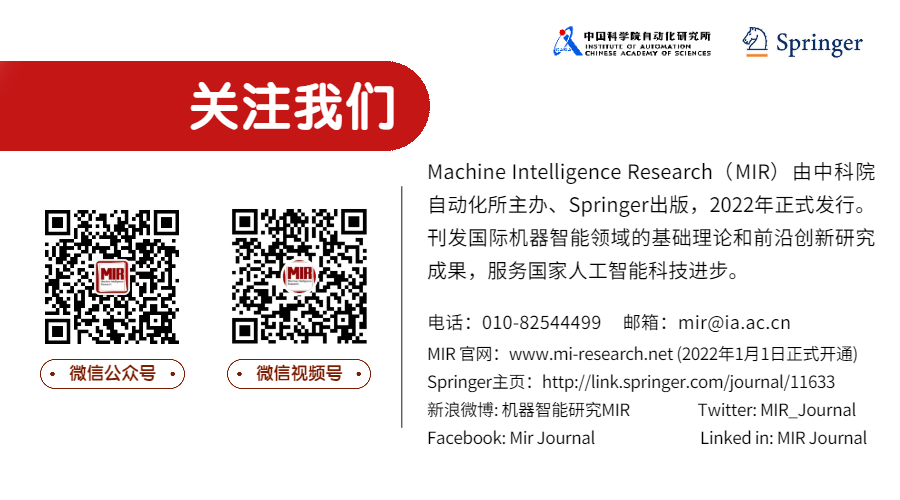 Machine Intelligence Research更加聚焦主办单位中科院自动化所的科研使命和重点领域,将依托主办单位的学科优势和国际化学术氛围,有效利用现有资源,高平台、高起点、快速发展,体现我国智能科学的科研实力及国际交流合作实力。