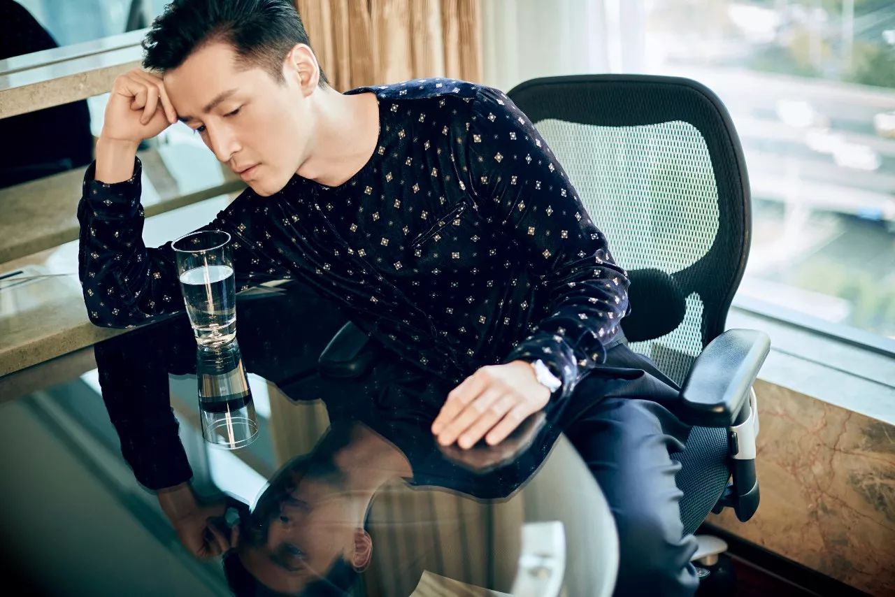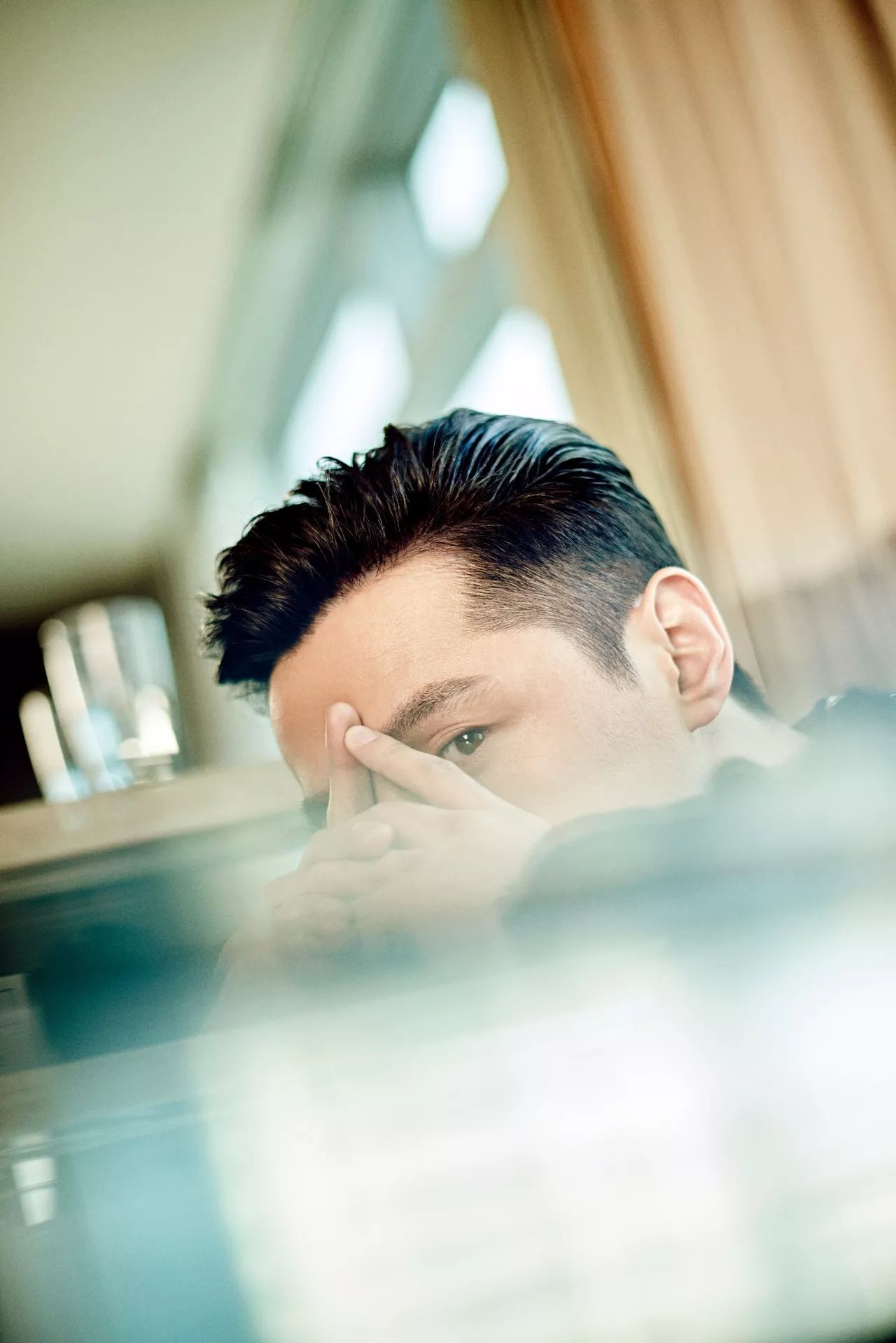 下午5点半,胡歌背后的窗外已经黑下来。由于光线不足,他的脸在顶灯的垂直照射下,开始显得有些松弛和疲惫。他用手指着脸告诉我们:「我的右脸是过去,左脸是现在。」