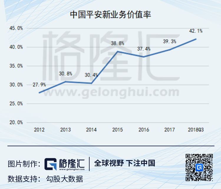 从近年来平安快速增长的保单价值率即可见一斑。2018年三季度报平安的保单价值率达到42.1%,同比提高4个多百分点。
