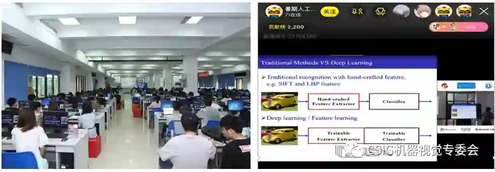 本次培训采取课题实地培训和视频网络直播培训两种模式。来自广东省和全国其他地区多所高校的500多名同学报名了本次培训,组委会遴选了其中200名同学参与实地培训,其他同学则参与视频网络直播培训。在为期八天的培训中,参与培训的同学聆听了机器学习及机器视觉领域的前沿技术成果和最新动态介绍,并与相关专家进行了深度的交流与讨论。除此之外,根据培训的内容专门设置了相对应的编程实训环节,以三个实际项目为支撑,由资深研究生向同学们进行现场编程指导,以提升学生的动手实践能力为目的,并促进基础理论的掌握,达到理论与实践相结合、让同学们全方位地理解知识和锻炼能力的教学效果。