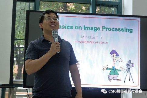 暑期班开幕式由华南理工大学软件学院博士研究生国雍主持,北京大学信息科学技术学院林宙辰教授通过视频对本次暑期班的开幕进行了远程祝贺。林教授分析了当前人工智能的发展状况和中国政府对人工智能产业的重视和规划,阐述了本次暑期班的目标和意义,对参与本次暑期班的同学们表示了热烈欢迎,并提出了殷切期望。之后,本次暑期班负责人谭明奎教授对培训背景、培训内容以及课程安排进行了细致介绍。