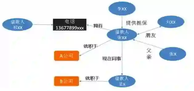 比如借款人张 xx 和借款人吴 x 填写信息为同事,但是两个人填写的公司名却不一样, 以及同一个电话号码属于两个借款人,这些不一致性很可能有欺诈行为。