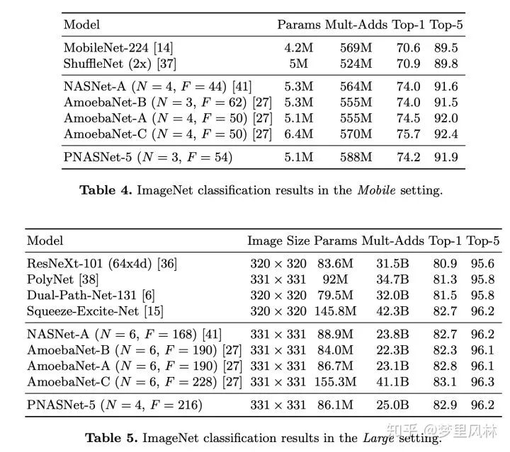 资源占用:在选择top1的条件下,搜索模型的速度是NASNet的五倍;也就是可以100个GPU,7天;