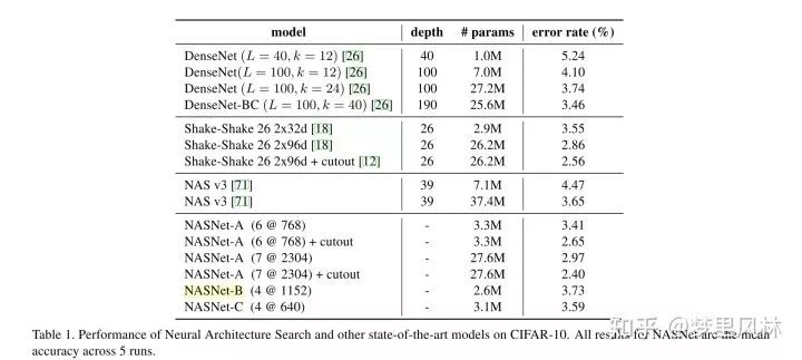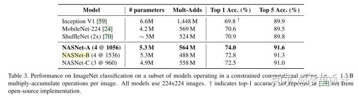把CIFAR上搜的这个模型在ImageNet上重新train,效果还不错,说明这个架构非常transferable