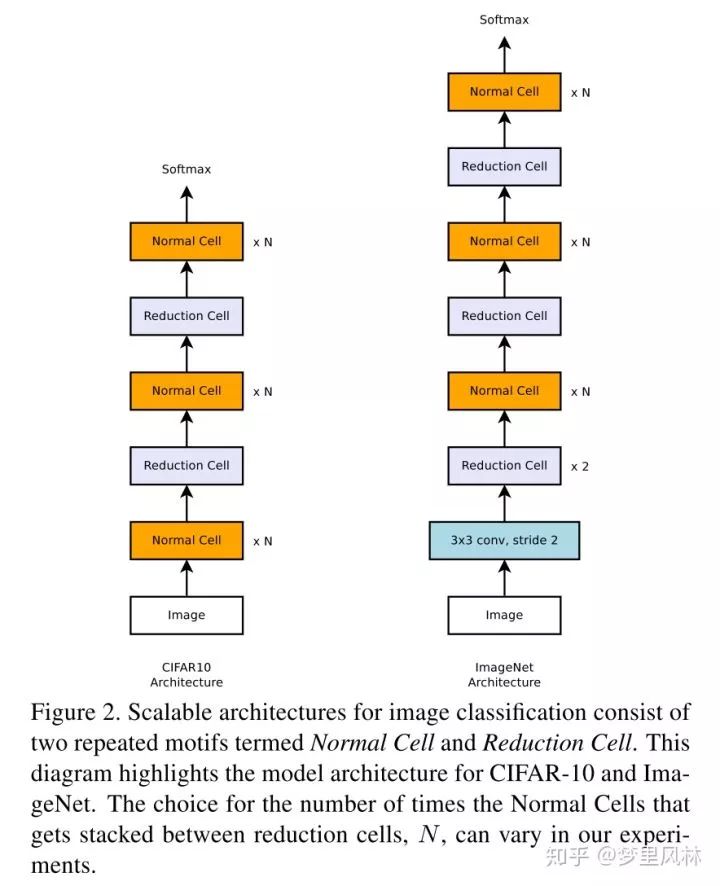 N是cell重复次数,为了保证不同N的相同的输出大小,中间的stride可能有区别,F是filter个数;