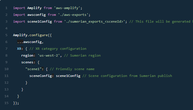 期间显示的XR资源amplify push代表为场景创建的IAM策略。这不会更改 Sumerian控制台中显示的场景。一个名为的配置文件aws-exports.js将被复制到您配置的源目录中,例如./src. 该文件将包含您配置的所有场景的列表。