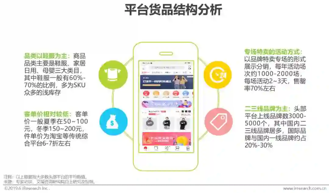 鞋服类居多,低价商品通过特卖专场触达三线及以下城市