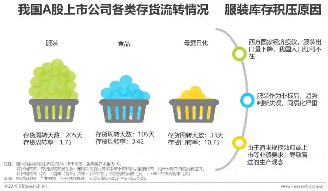 现阶段“先产再销”的模式积压了大量的成品库存:以服装产业为例,品牌商一般会提早半年甚至一年时间判断未来流行趋势,通过上期销售预测,安排下一期订单生产及采购。但是随着潮流趋势越来越难以预估,这种生产方式造成了严重的滞销款积压的情况。因此目前成品库存是库存电商平台上的主要货源。