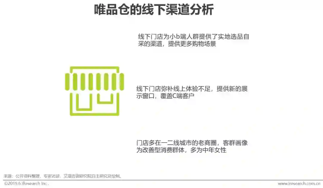 批发+零售模式:维品仓线上平台的目标客群稍有不同。唯品仓目标客户中,中小型批发商的占比很高,为了满足他们的进货需求,相比同类平台,库存深度中等,购物门槛也比一般的库存分销平台稍高一些,需要五件起购。