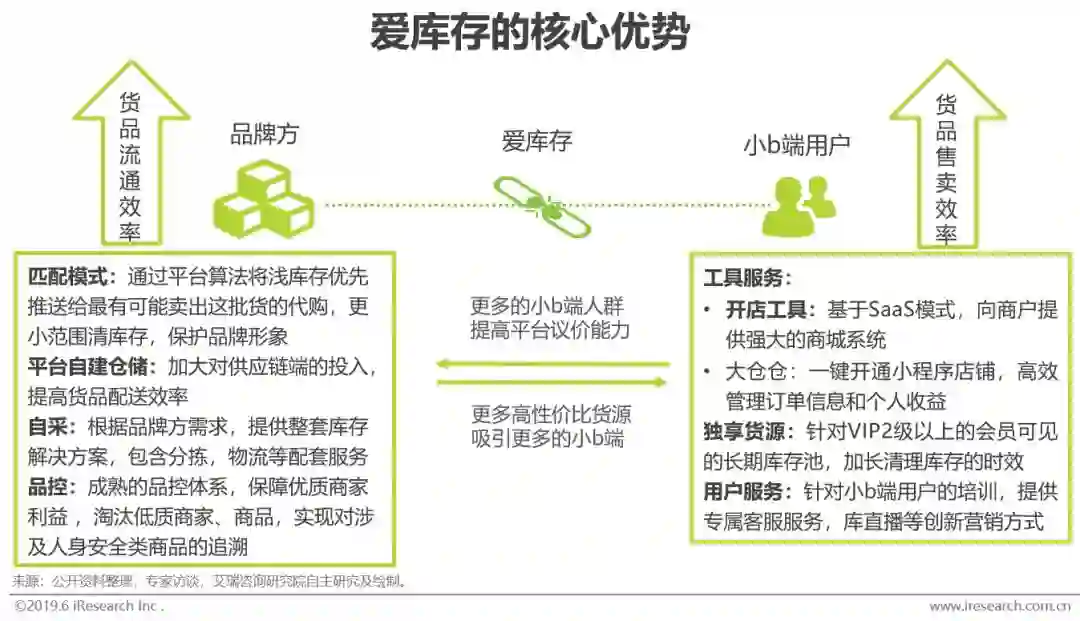 爱库存创立于2017年9月,是国内第一家S2b2C类库存电商平台。爱库存上游打通品牌方库存,下游服务分销商,借助社交电商的爆发力,带动分销商的能动性进行销货。平台创立后销售额呈指数增长,2018年12月GMV已超过6亿。由于有线下特卖的背景,平台更加理解上下游两端的痛点, 不断深化平台的服务,致力于提高整体产业链的效率,为品牌方和小b端人群提供更全面的解决方案。