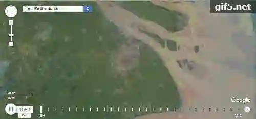 熟悉遥感的同学会知道目视解译这个词。也就是说看图识物。就像前面提到的,由于遥感成像原理与人眼成像原理类似。我们可以把它当地球拍的一系列照片,通过看着一系列照片,我们可以做监测(就像警察叔叔看监控找犯人一样)。监测地球发生的变化,也可以监测某种地物的变化(从监控视频中找出犯人)。就像下面的图片。